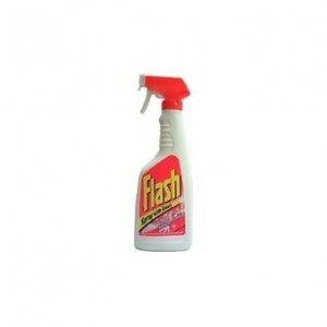 Flash spray with bleach. Cleans tough soils and stains from hard surfaces like cooker tops, sinks, work surfaces, ceramic tiles and porcelain enamel.